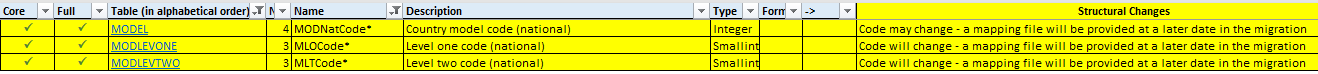 - o Data table model.txt through the field “MODNatCode”.
