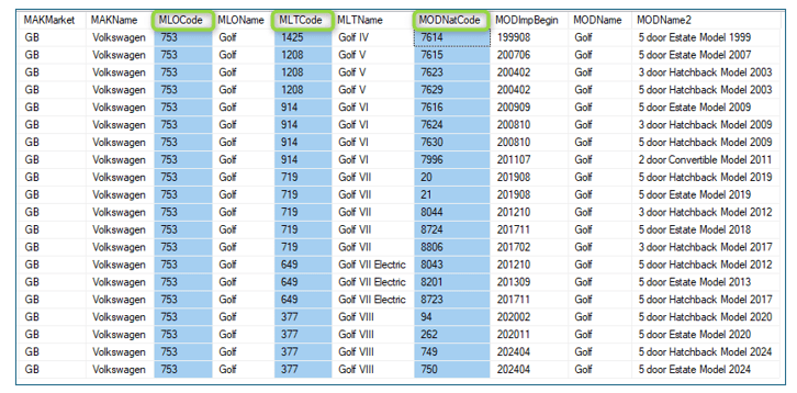 As illustrated in the screenshot below, these model identification fields (MLOCode, MLTCode, MODNatCode) will continue to be updated dynamically until they become static in October 2025.