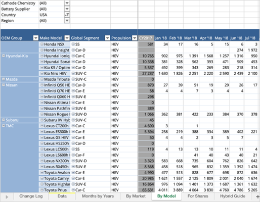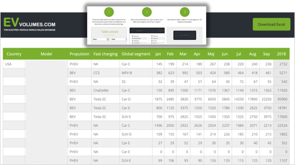 Our BEV and PHEV monthly sales tracker is updated regularly across 130 markets and for over 600 models – with more being added every month. You can filter by segment, fast charging, propulsion, battery size and chemistry, cell supplier, region, country, and more.