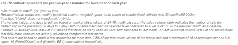 ‘Although RVs have stabilised recently, demand remains rather weak. Therefore, RVs can be expected to remain under pressure. In 2025, %RVs are forecast to decrease, down 2.8% when compared with December 2024. Pressure will probably ease in 2026, with RVs forecasted to decline by 1.4%,’ he outlined.