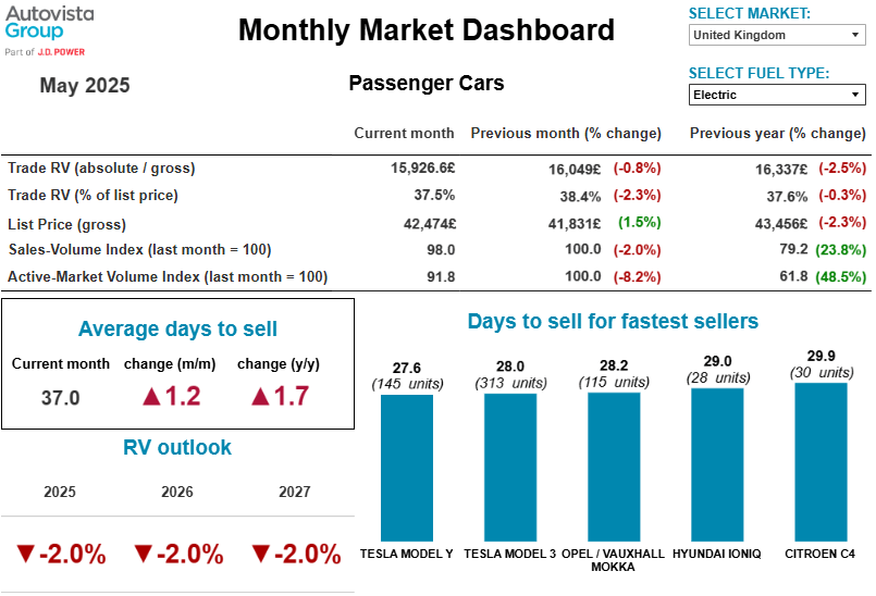 ‘Overall, HEV %RVs decreased slightly in May, as increasingly expensive vehicles were sold. Newer and more expensive models in this category do not hold values as well as older hybrid cars, which were on the market when the technology was still emerging,’ commented Ludovic Percier, Autovista Group’s senior RV analyst for France.